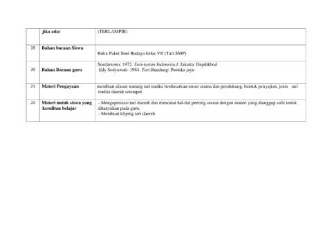 22 Materi untuk siswa yang - Mengapresiasi tari daerah dan mencatat hal-hal penting sesuai dengan materi yang dianggap sulit untuk