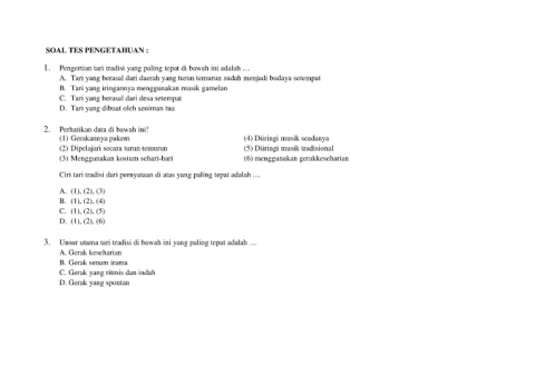 1. Pengertian tari tradisi yang paling tepat di bawah ini adalah ....