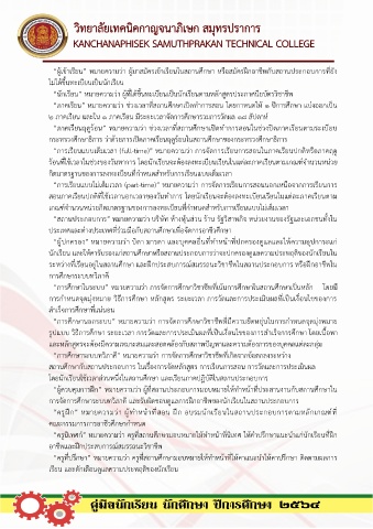 “นักเรียน” หมายความว่า ผู้ที่ได้ขึ้นทะเบียนเป็นนักเรียนตามหลักสูตรประกาศนียบัตรวิชาชีพ