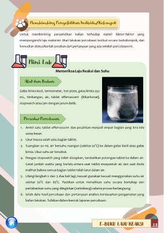 mempengaruhi laju reaksi ini. Mari lakukan percobaan berikut secara berkelompok, dan