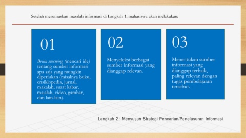 Setelah merumuskan masalah informasi di Langkah 1, mahasiswa akan melakukan: