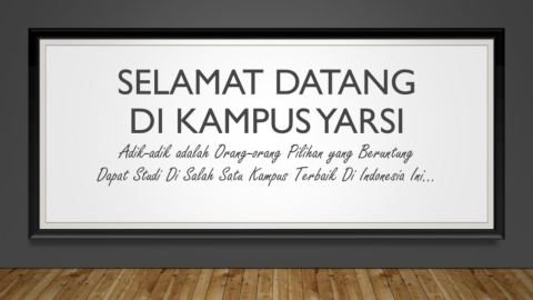 SELAMAT DATANG DI KAMPUS YARSI Adik-adik adalah Orang-orang Pilihan yang Beruntung Dapat Studi Di Salah Satu Kampus Terbaik Di Indonesia Ini…