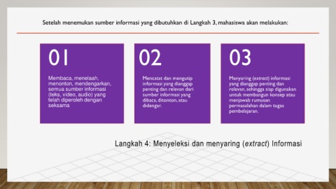 Setelah menemukan sumber informasi yang dibutuhkan di Langkah 3, mahasiswa akan melakukan: