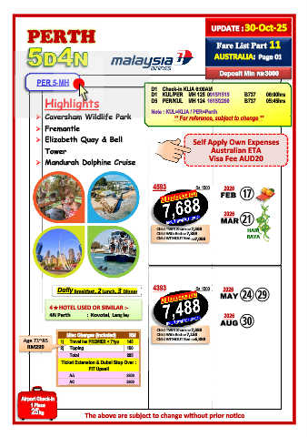 ➢ Caversham Wildlife Park Note : KUL=KLIA / PER=Perth