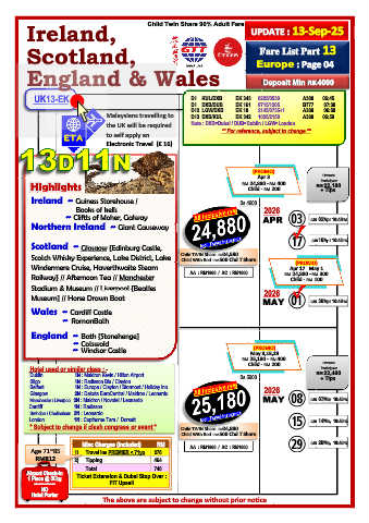 Ireland, Child Twin Share 90% Adult Fare UPDATE : 13-Sep-25