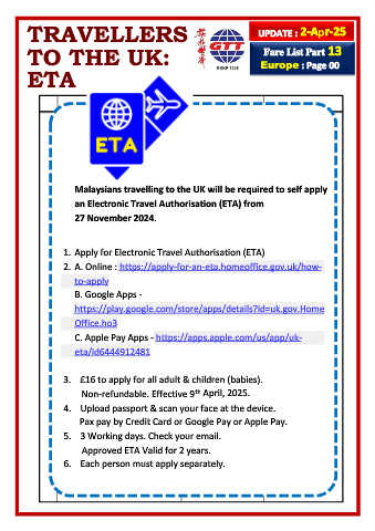 Malaysians travelling to the UK will be required to self apply