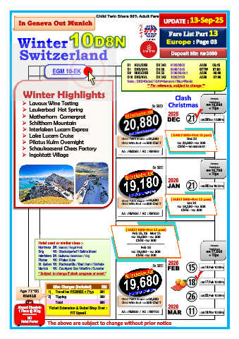 ➢ Pilatus Kulm Overnight Child TWIN Share RM20,580 RM 20,880 - RM 200