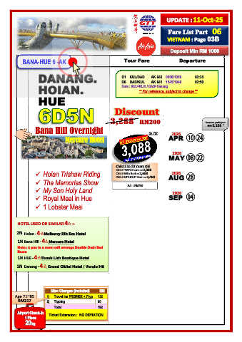 HOIAN. Note : KUL=KLIA / DAD=Danang