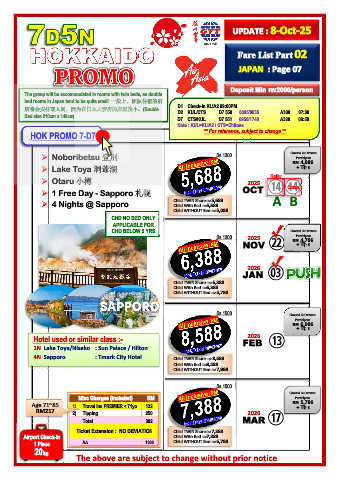 ➢ 4 Nights @ Sapporo Child TWIN Share RM5,688