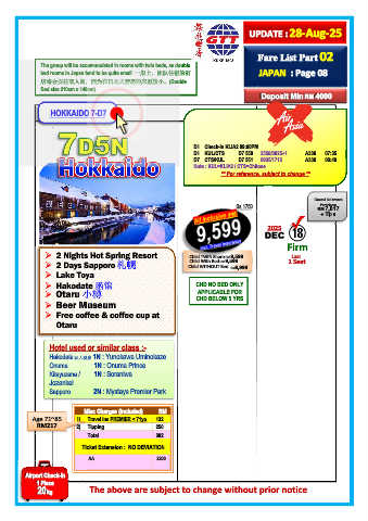 ➢ 2 Days Sapporo 札幌 Child With Bed RM9,599 1 Seat