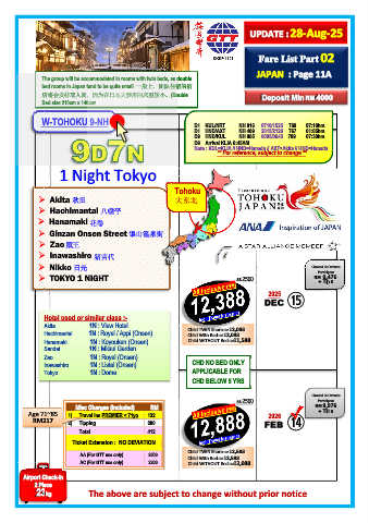 The group will be accommodated in rooms with twin beds, as double JAPAN : Page 11A