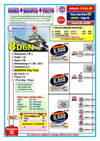 ➢ Wakayama 和歌山 OCT Close C/IN 18/Oct 11:30PM