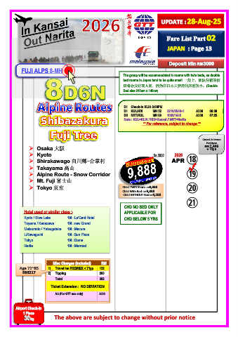 Note : KUL=KLIA / KIX=Kansai // NRT=Narita