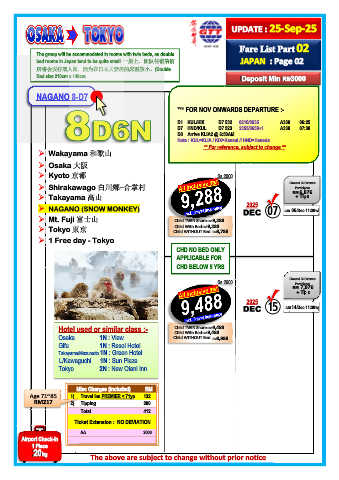 ➢ NAGANO (SNOW MONKEY) DEC C/IN 06/Dec 11:30PM