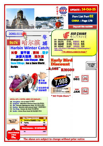 长春 . 查干湖 .吉林 .雪乡 ** For reference, subject to change **