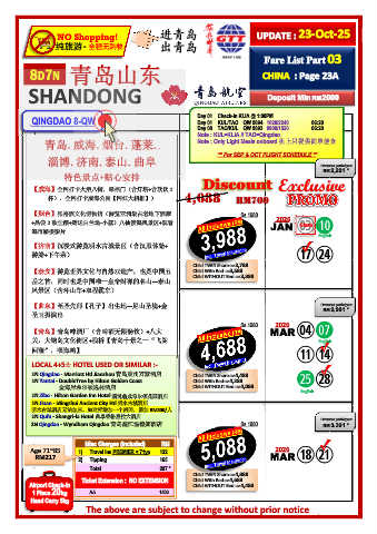 青岛.威海.烟台.蓬莱. Note : Only Light Meals onboard 机上只提供简单便食