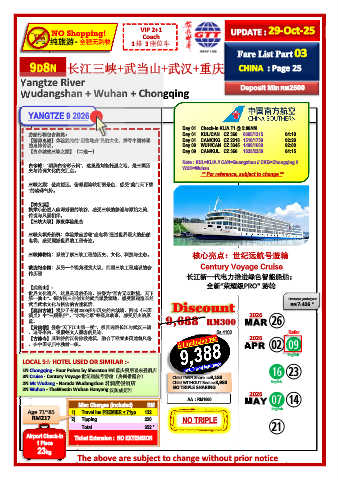 特色景点+贴心安排 ** For SEP & OCT FLIGHT SCHEDULE **