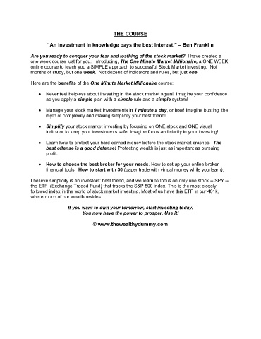 Here are the benefits of the One Minute Market Millionaire course:
