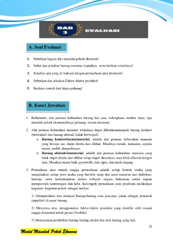 1. Kebutuahn, alat pemuas kebutuhan barang dan jasa, kelangkaan sumber daya, tiga
