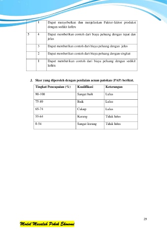 J. Skor yang diperoleh dengan penilaian acuan patokan (PAP) berikut.