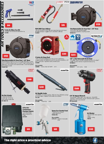 • Includes 70,105,260 and 350mm Fan tip absorbing bumper • Supplied with calibration certificate • Auto track guided hose layering system