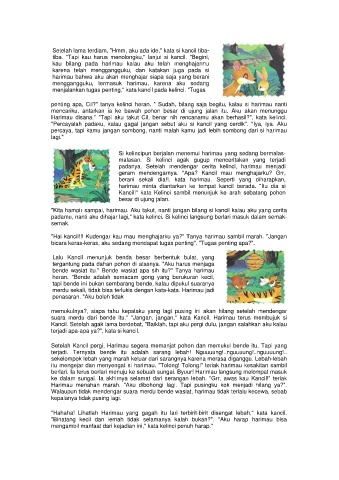 suara merdu dari bende itu." "Jangan, jangan," kata Kancil. Harimau terus membujuk si