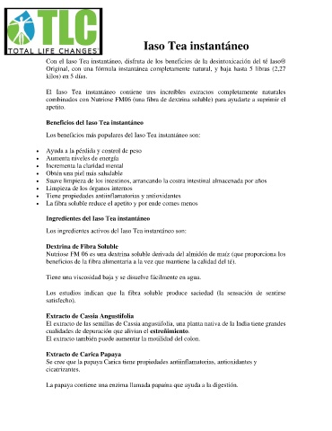 Los ingredientes activos del Iaso Tea instantáneo son: