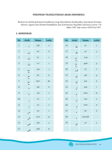 Berikut ini adalah pedoman transliterasi yang diberlakukan berdasarkan keputusan Bersama