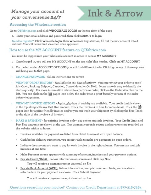 • MAKE A PAYMENT - for existing invoices only - pay one or multiple invoices. Your Credit Limit and