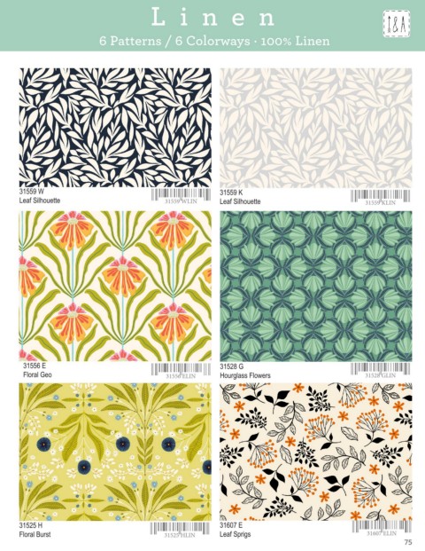 6 Patterns / 6 Colorways · 100% Linen arrow for I- organic option