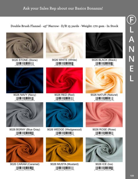 Double Brush Flannel · 43" Narrow · D/R 15 yards · Weight: 170 gsm · In Stock