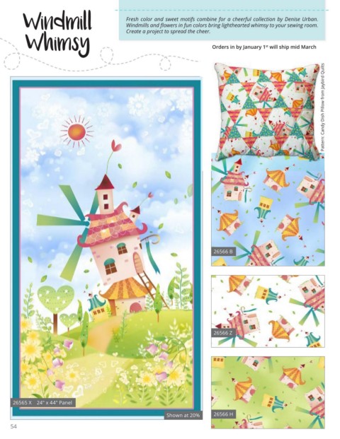 Windmill Windmills and flowers in fun colors bring lighthearted whimsy to your sewing room.