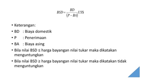 • Bila nilai BSD ≤ harga bayangan nilai tukar maka dikatakan
