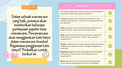 peristiwa. Contoh : Kapan kita harus menghemat air?