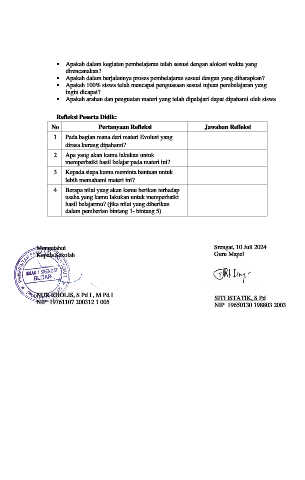 ▪ Apakah arahan dan penguatan materi yang telah dipelajari dapat dipahami oleh siswa.