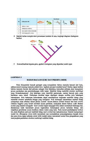 4. Setelah kalian mengisi tabel persamaan karakter di atas, lengkapi diagram kladogram