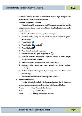 Modul ini terbagi menjadi 3 kegiatan pembelajaran dan di dalamnya