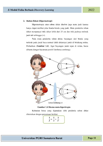 Perhatikan (Gambar 1.4). Agar bayangan jatuh tepat di retina, harus