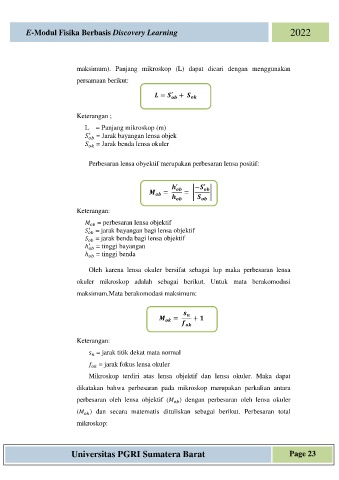 maksimum). Panjang mikroskop (L) dapat dicari dengan menggunakan