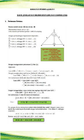 KEGIATAN PEMBELAJARAN I BAB II. JUMLAH DAN SELISIH SINUS (SIN) DAN COSINUS (COS) I. Pertemuan Pertama