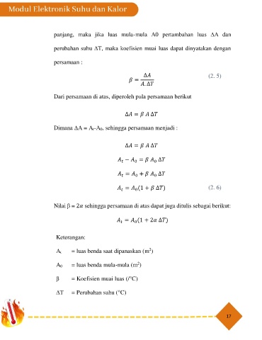 perubahan suhu ∆T, maka koefisien muai luas dapat dinyatakan dengan