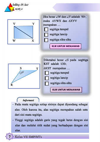 - Tinggi segitiga adalah garis yang tegak lurus dengan sisi