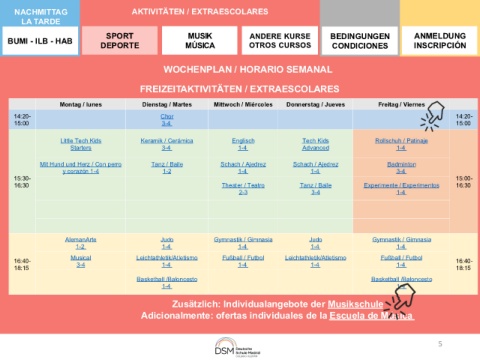 NACHMITTAG AKTIVITÄTEN / EXTRAESCOLARES