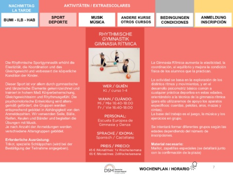 NACHMITTAG AKTIVITÄTEN / EXTRAESCOLARES