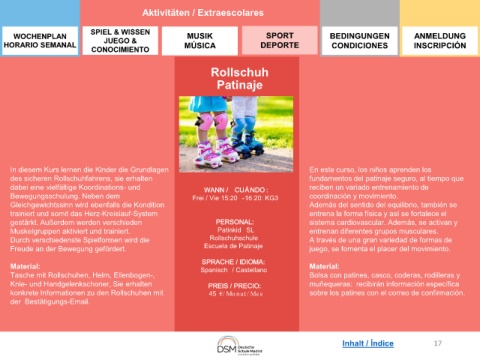 konkrete Informationen zu den Rollschuhen mit 45 €/ Mo nat/ Mes sobre los patines con el correo de confirmación.