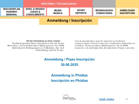 Nachm ittag saktivitäten akzep tieren Sie d ie in d er extraescolares Usted acep ta las cond iciones ind icad as en