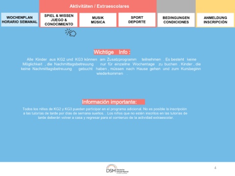 Todos los niños de KG2 y KG3 pueden participar en el programa adicional. No es posible la inscripción