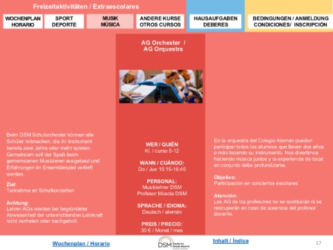 Wochenplan / Horario Inhalt / Índice