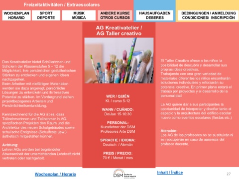 Kennzeichnend für die AG ist es, dass Do/Jue 15-16:30 espacio y la arquitectura del edificio escolar
