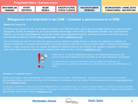 Wochenplan / Horario Inhalt / Índice 46